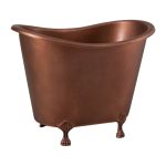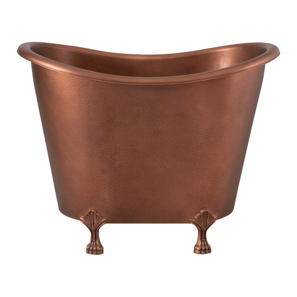 Indulge in the ultimate bathing experience with this slipper hammered soaking bathtub with feet. The classic slipper design offers exceptional back support and comfort, while the hand-hammered copper finish adds a touch of artistry to your bathroom.